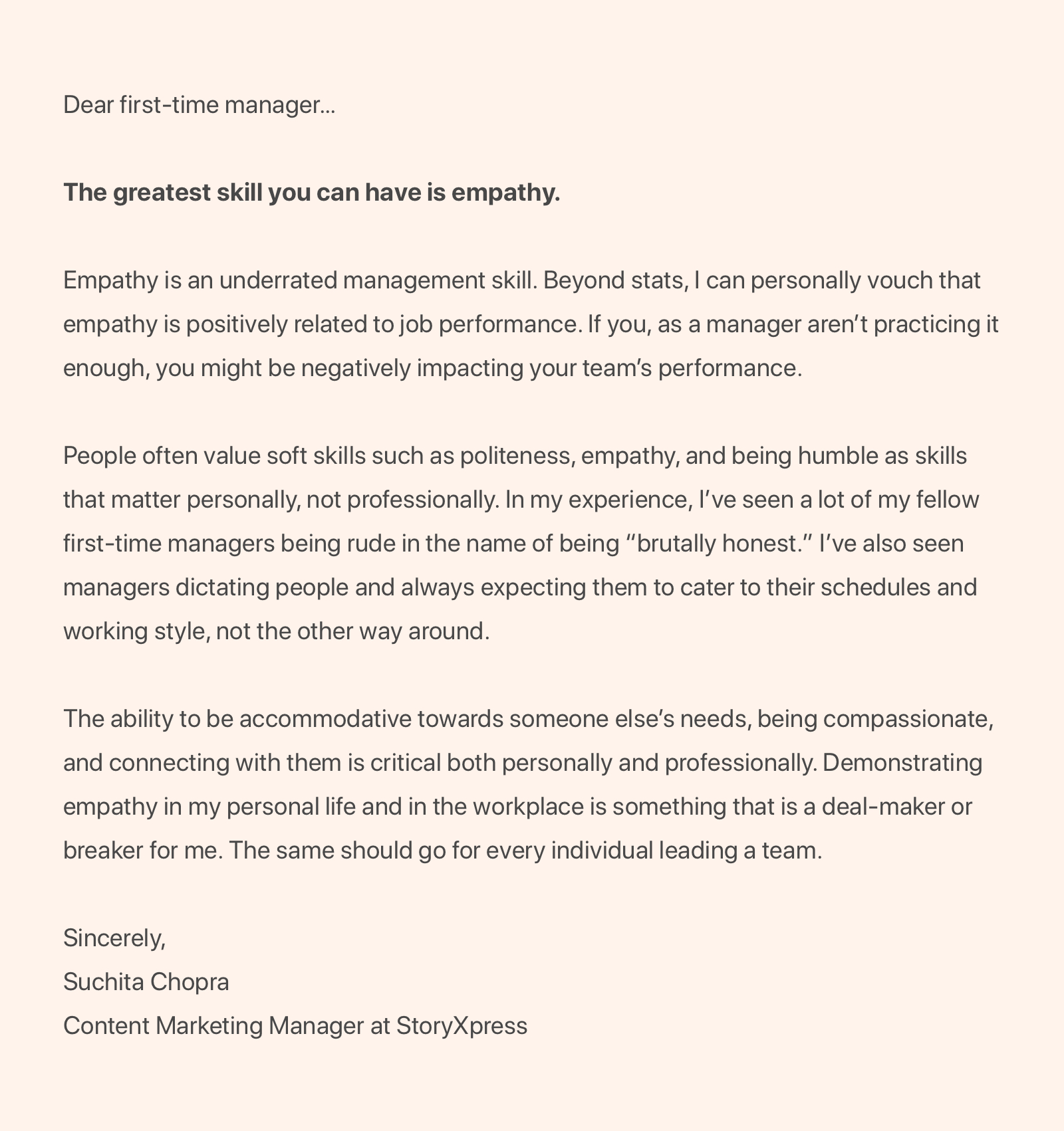 Hypercontext Yc S21 On Twitter Along The Same Lines Suchita Chopra Of Storyxpress Shares That The Greatest Skill You Can Have As A Manager Is Empathy Be Accommodating Towards Your Team S Needs